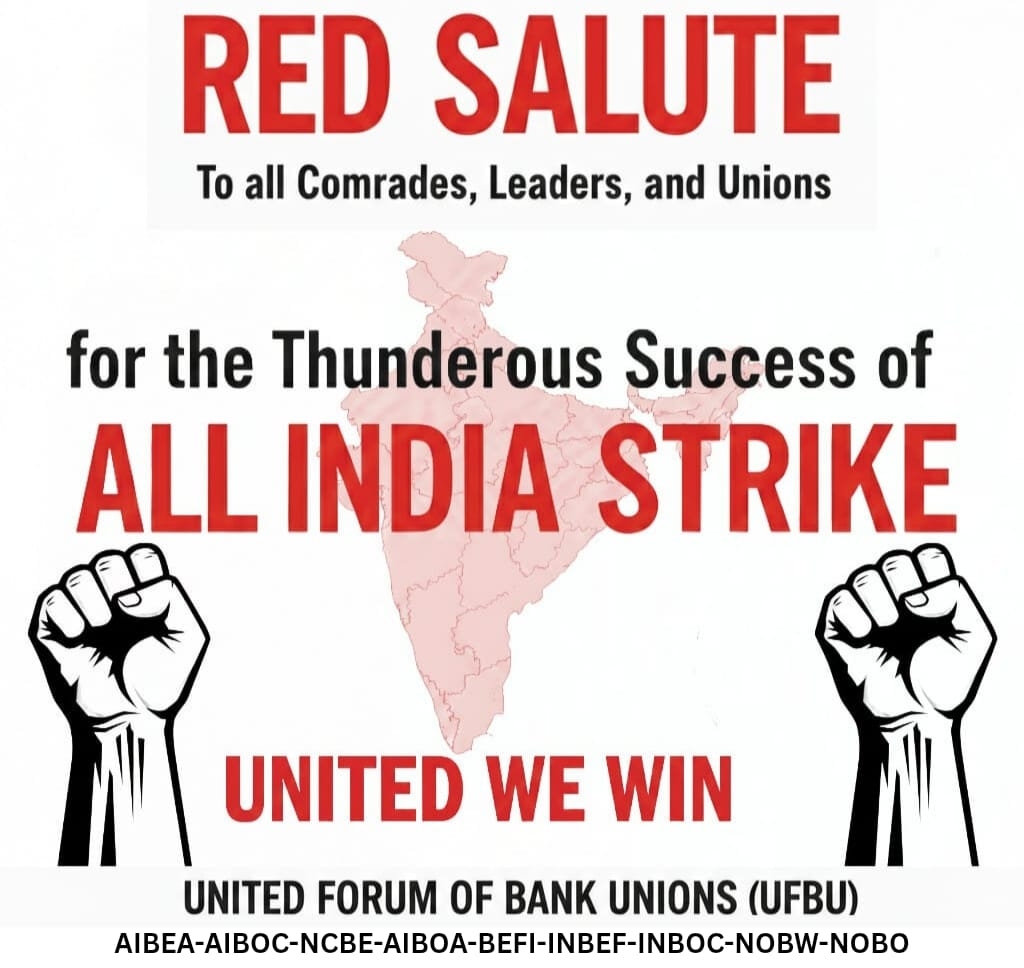 27 जनवरी 2026 को बैंक कर्मचारियों ने हफ्ते में 5 दिन बैंकिंग की अपनी मांग को लेकर पूरे भारत में सफल हड़ताल की।