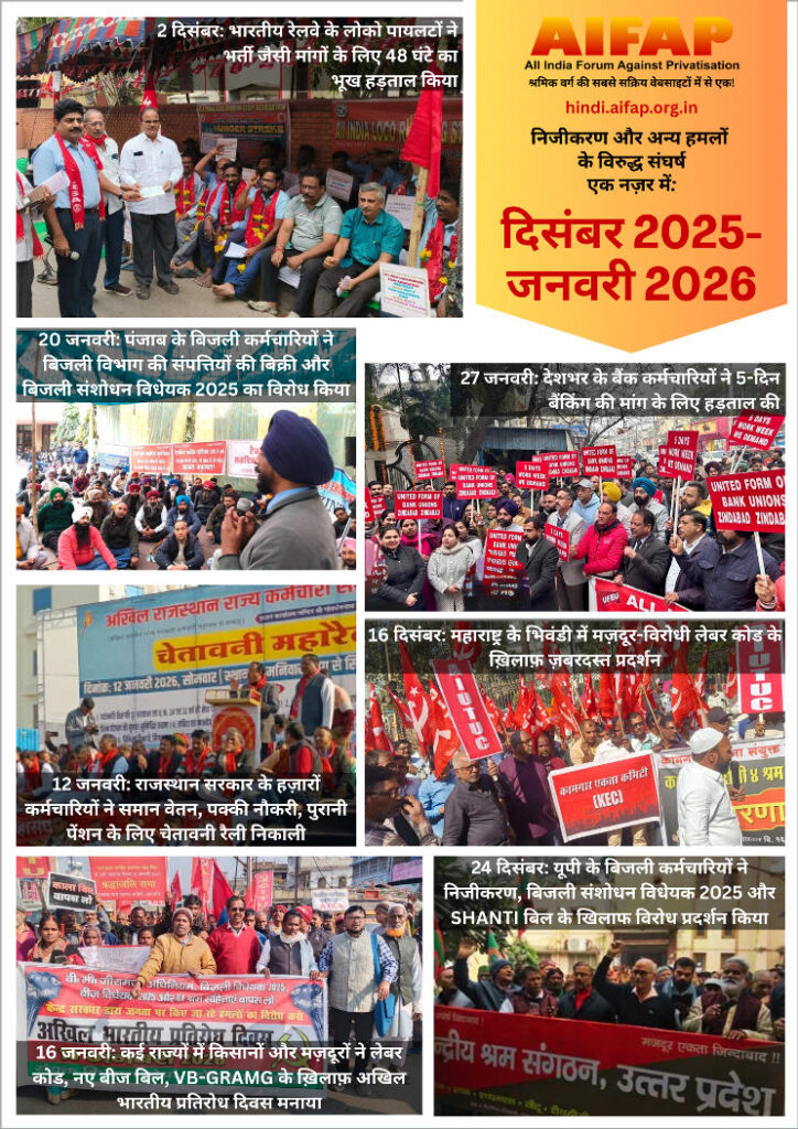 ऑल इंडिया पावर इंजीनियर्स फेडरेशन (AIPEF) की प्रेस विज्ञप्ति इलेक्ट्रिसिटी (अमेंडमेंट) बिल 2025 और राष्ट्रीय विद्युत नीति 2026 लोगों के सस्ती बिजली पपने के अधिकार Read more