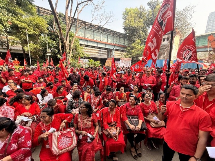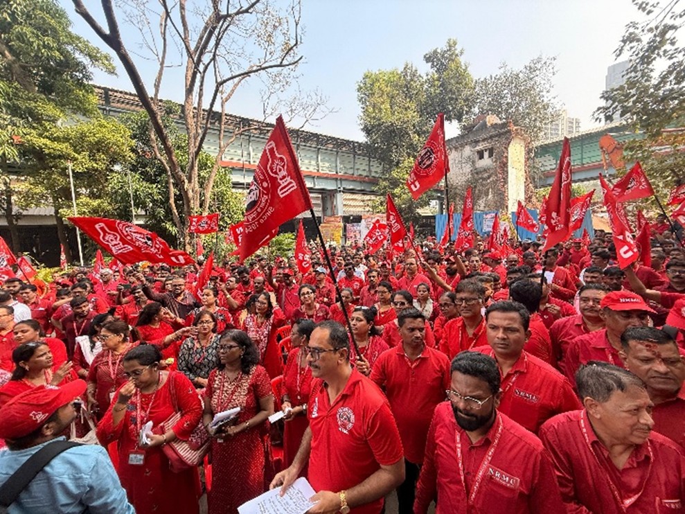 सेंट्रल रेलवे के हजारों कर्मचारियों ने 26 नवंबर को अखिल भारतीय विरोध के लिए केंद्रीय ट्रेड यनीयनों (CTUs) के आह्वानके समर्थन में माटुंगा, मुंबई के रेलवे कार्यशाला में प्रदर्शन किया। उनका विरोध नए चार श्रम संहिताओं के कार्यान्वयन की घोषणा के खिलाफ था।
