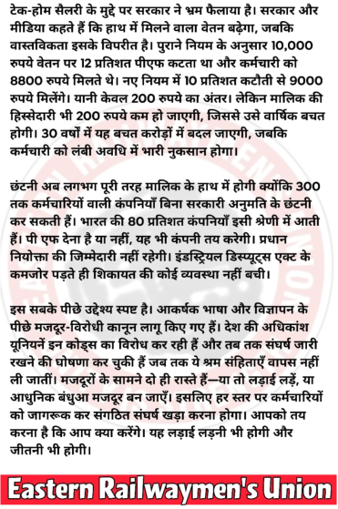 ईस्टर्न रेलवेमेंस यूनियन से प्राप्त रिपोर्ट