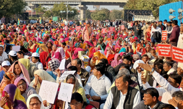 राजस्थान के सरकारी कर्मचारियों ने समान काम का समान वेतन, संविदा और मानदेय पर कार्यरत मज़दूरों की स्थायी नियुक्ति, पुरानी पेंशन की बहाली और अन्य माँगों व निजीकरण का विरोध करने के लिए महारैली आयोजित की।