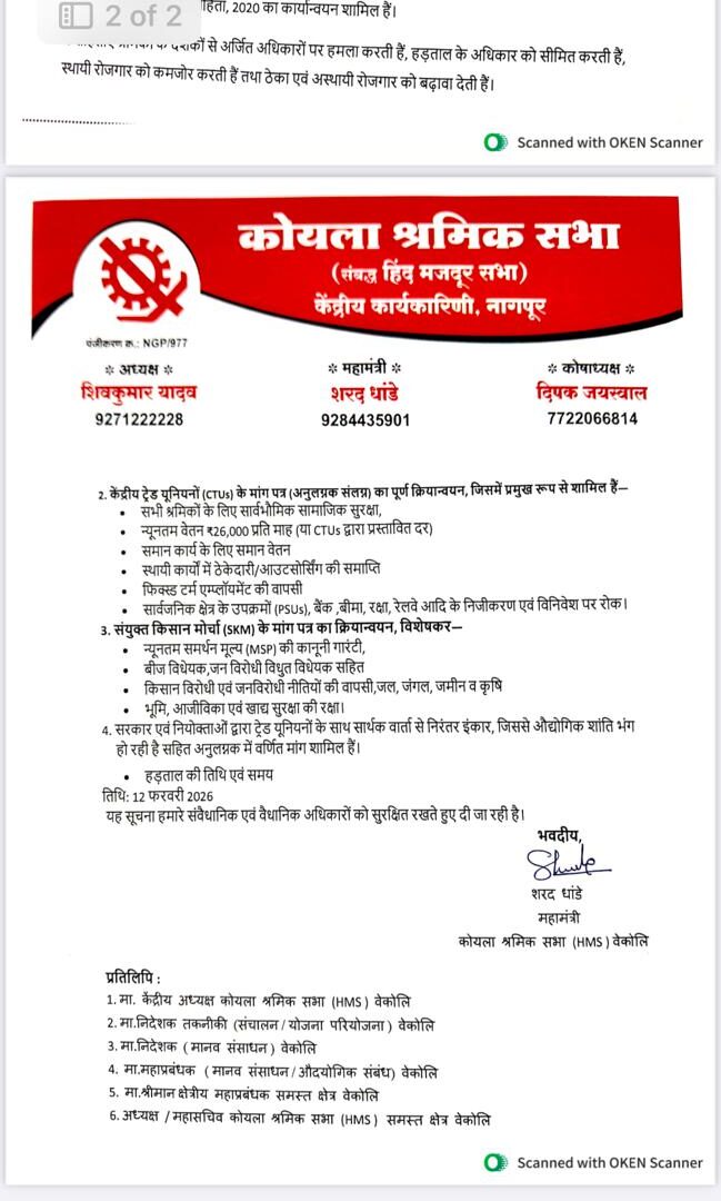 हम कोयला श्रमिक सभा (HMS से संबद्ध) का नोटिस संलग्न कर रहे हैं। हमारी अंग्रेज़ी वेबसाइट (www.aifap.org.in) पर निम्नलिखित यूनियनों के नोटिस भी उपलब्ध हैं: