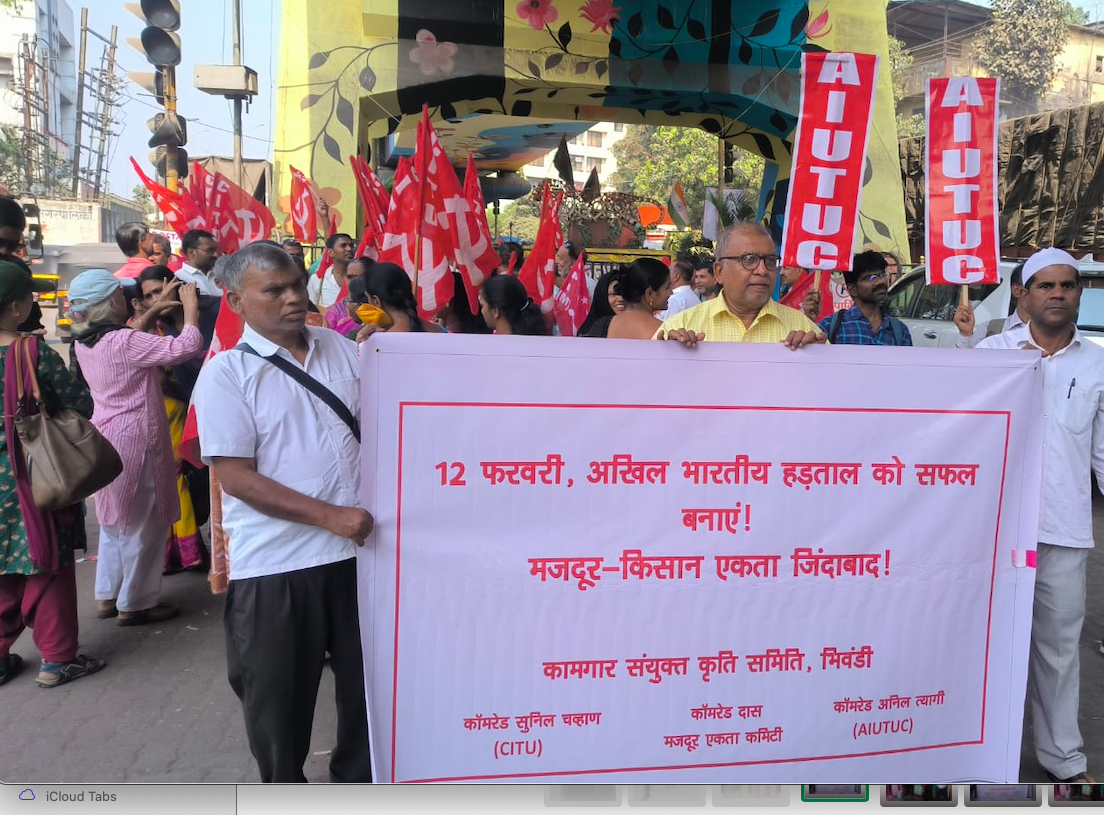 12 फरवरी 2016 को सर्व-हिन्द हड़ताल के समर्थन में भिवंडी के नगर पालिका कार्यालय भवन के सामने दर्जनों बिजली करघा (पावर लूम) और बीड़ी श्रमिकों, राजनीतिक कार्यकर्ताओं, और निवासियों ने एक उग्र प्रदर्शन में भाग लिया।