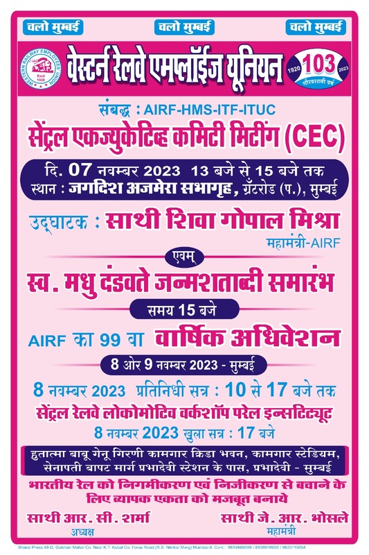 केंद्रीय ट्रेड यूनियनों द्वारा जारी प्रेस वक्तव्य प्रेस वक्तव्य केंद्रीय ट्रेड यूनियनों ने आईसीएफ पेरंबूर परिसर के भीतर निजी कंपनी के साथ वंदे भारत ट्रेन Read more