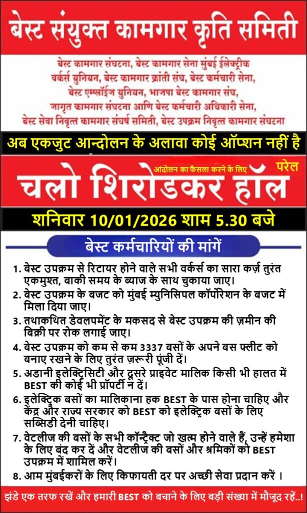 कॉम. हरभजन सिंह सिद्धू (महासचिव, हिंद मजदूर सभा) ने 9 जनवरी 2026 को दिल्ली में केंद्रीय ट्रेड यूनियनों और सेक्टोरल फेडरेशन/एसोसिएशनों के संयुक्त मंच द्वारा Read more